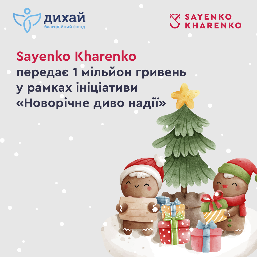 Детальніше Sayenko Kharenko жертвує 1 мільйон гривень на «Новорічне диво надії» – спільну ініціативу з благодійним фондом «Дихай»