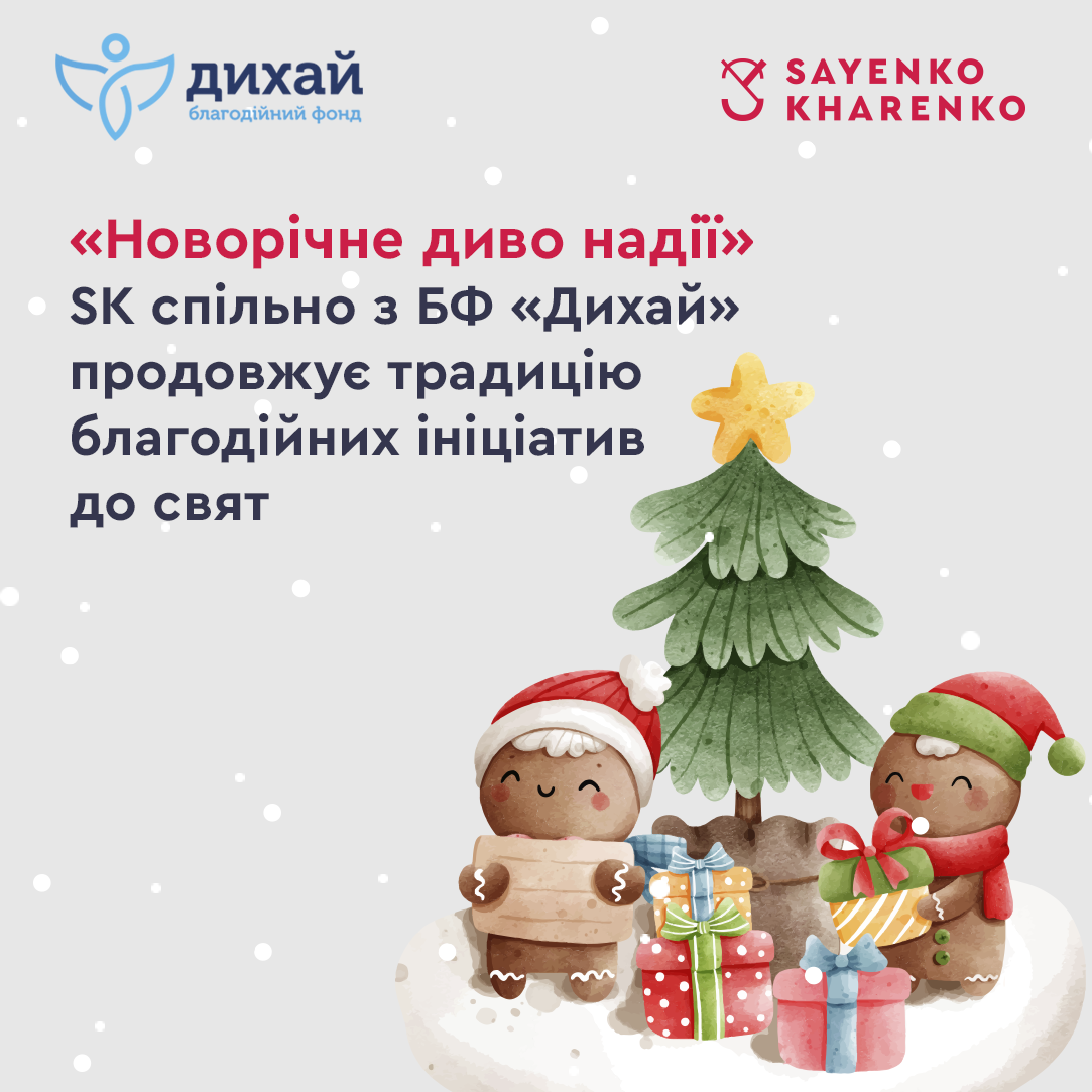Детальніше «Новорічне диво під час війни» – Sayenko Kharenko спільно з благодійним фондом «Дихай» продовжує традицію благодійних ініціатив до свят