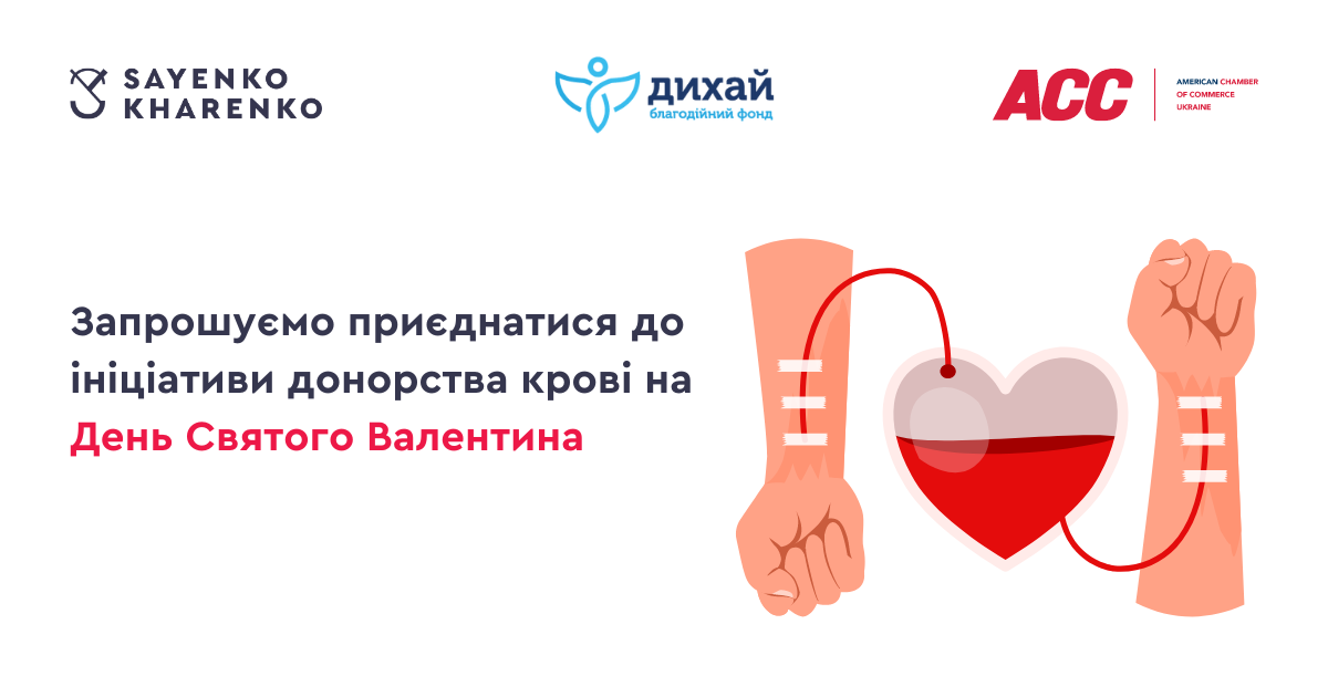 Детальніше Sayenko Kharenko запрошує долучитися до Ініціативи Донорства крові на День Святого Валентина