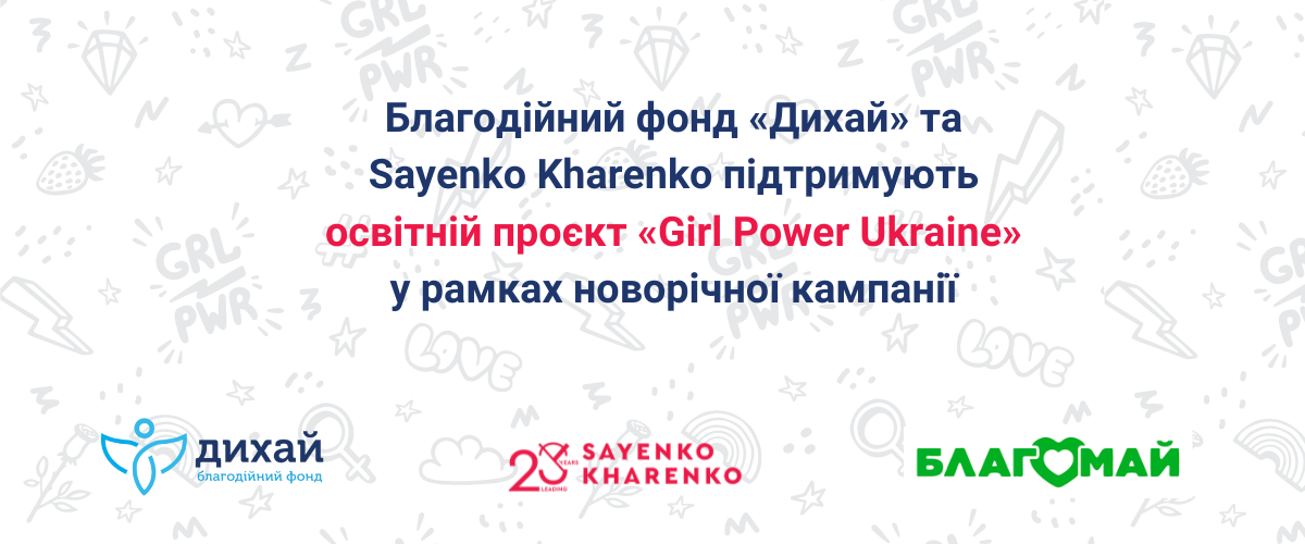 Детальніше Sayenko Kharenko, разом із благодійним фондом «Дихай» підтримують освітній проєкт «Girl Power Ukraine» у рамках новорічної кампанії